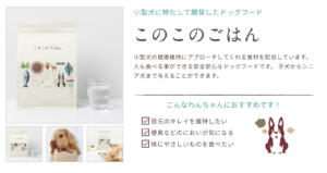 ![]() ![]() | 2. このこのごはん | 3.85円 | 全犬種 全年齢 | 日本 | 鶏肉(ささみ、レバー) | 小麦グルテンフリー | |